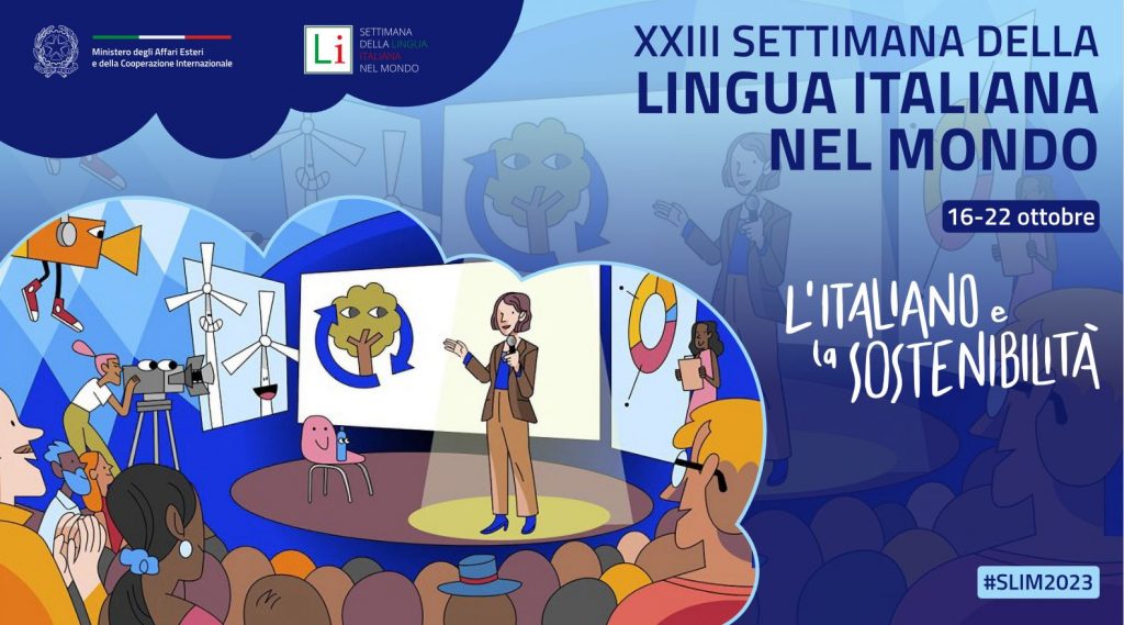 “İtalyanca ve sürdürülebilirlik” temasına adanan XXIII. Dünyada İtalyan Dili Haftası, genç nesillere adanan önceki edisyon ve EXPO 2030 Roma adaylığı (“People and Territories. Regeneration, inclusion and innovation) ile uyumluluk, ileri görüşlü ekolojik düşünceye sahip bir yazar olan Italo Calvino’nun doğumunun yüzüncü yıl kutlamaları çerçevesinde sürdürülebilirlik kültürünü ve çevre sorunlarının çözümü açısında öncü bir İtalya imajını teşvik etmek amacıyla tertip edilmiştir.