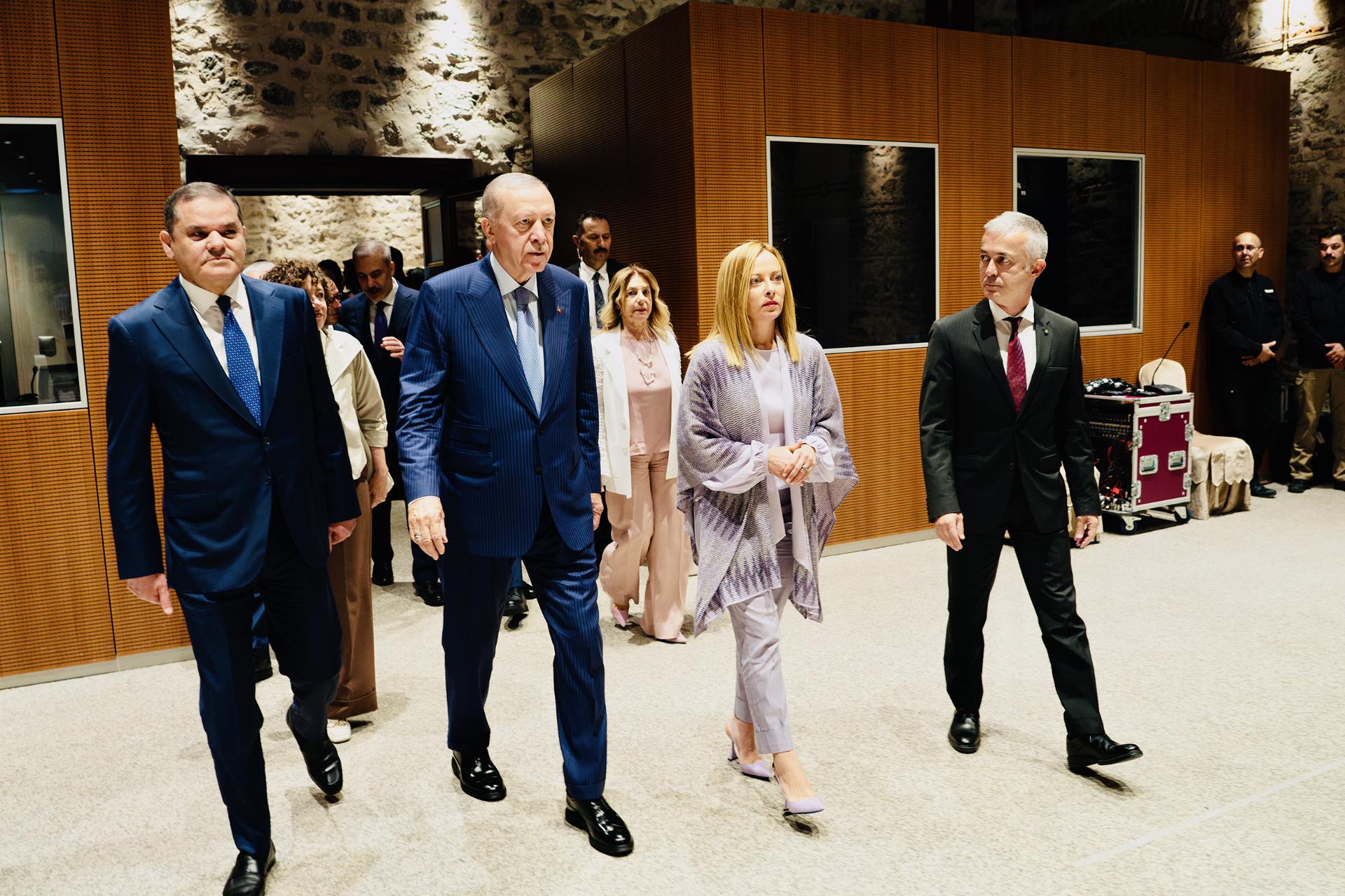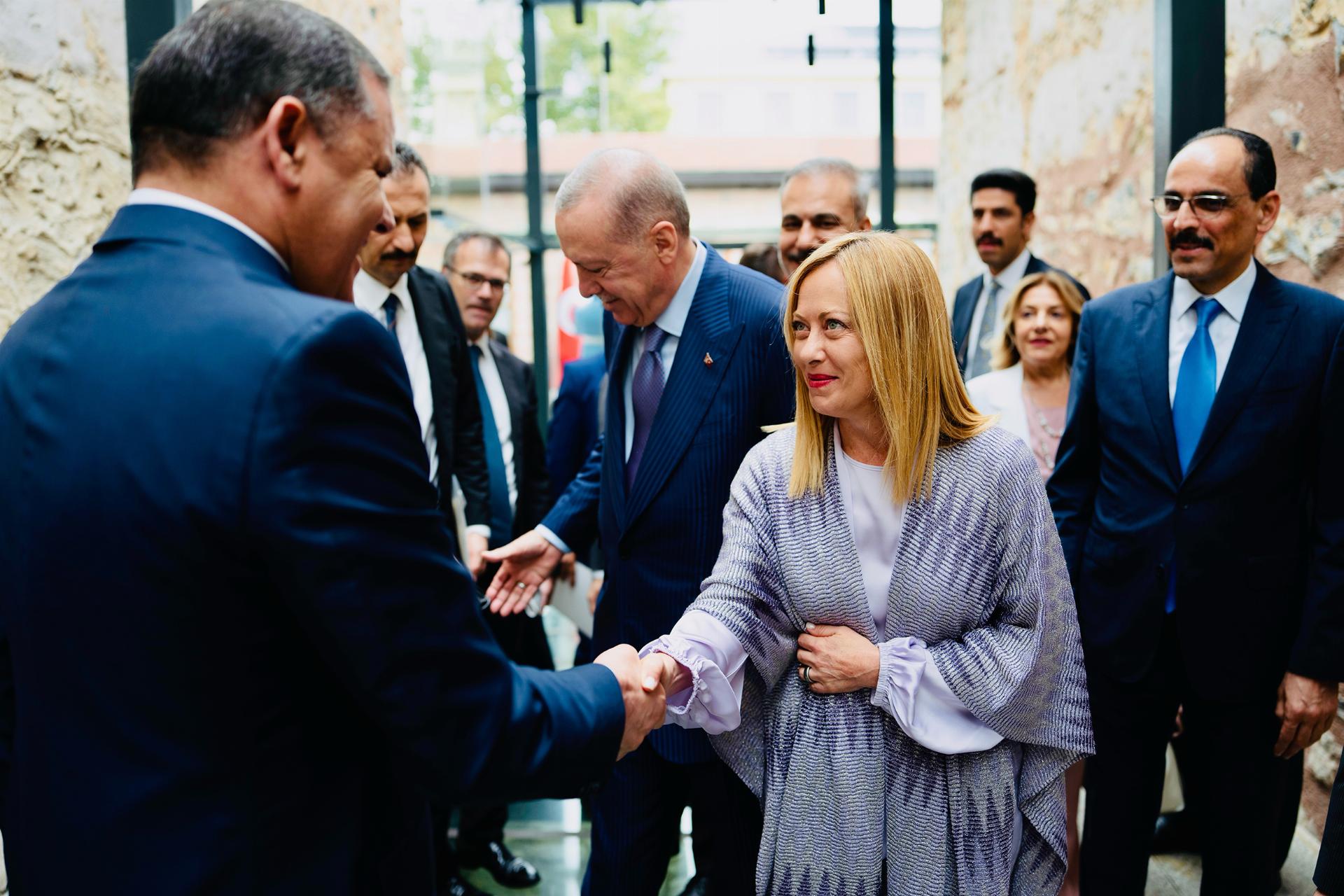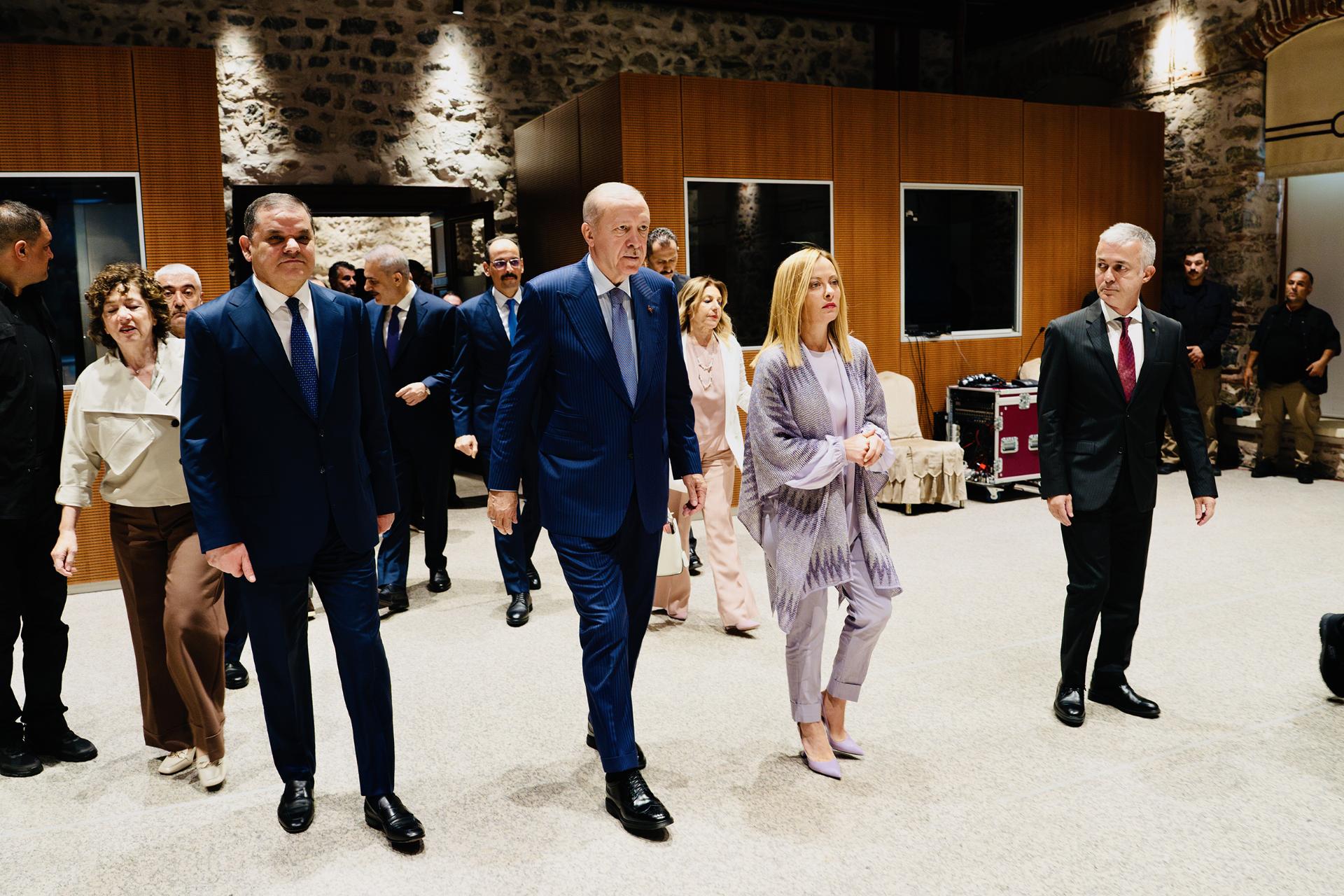 İSTANBUL – 1 Ağustos. Başbakan Giorgia Meloni, Türkiye Cumhuriyeti Cumhurbaşkanı Recep Tayyip Erdoğan ve Libya Ulusal Birlik Hükûmeti Başbakanı Abdulhamid