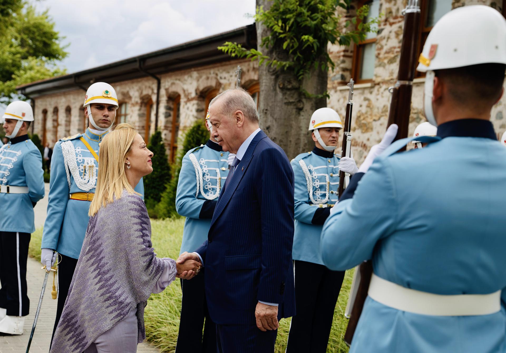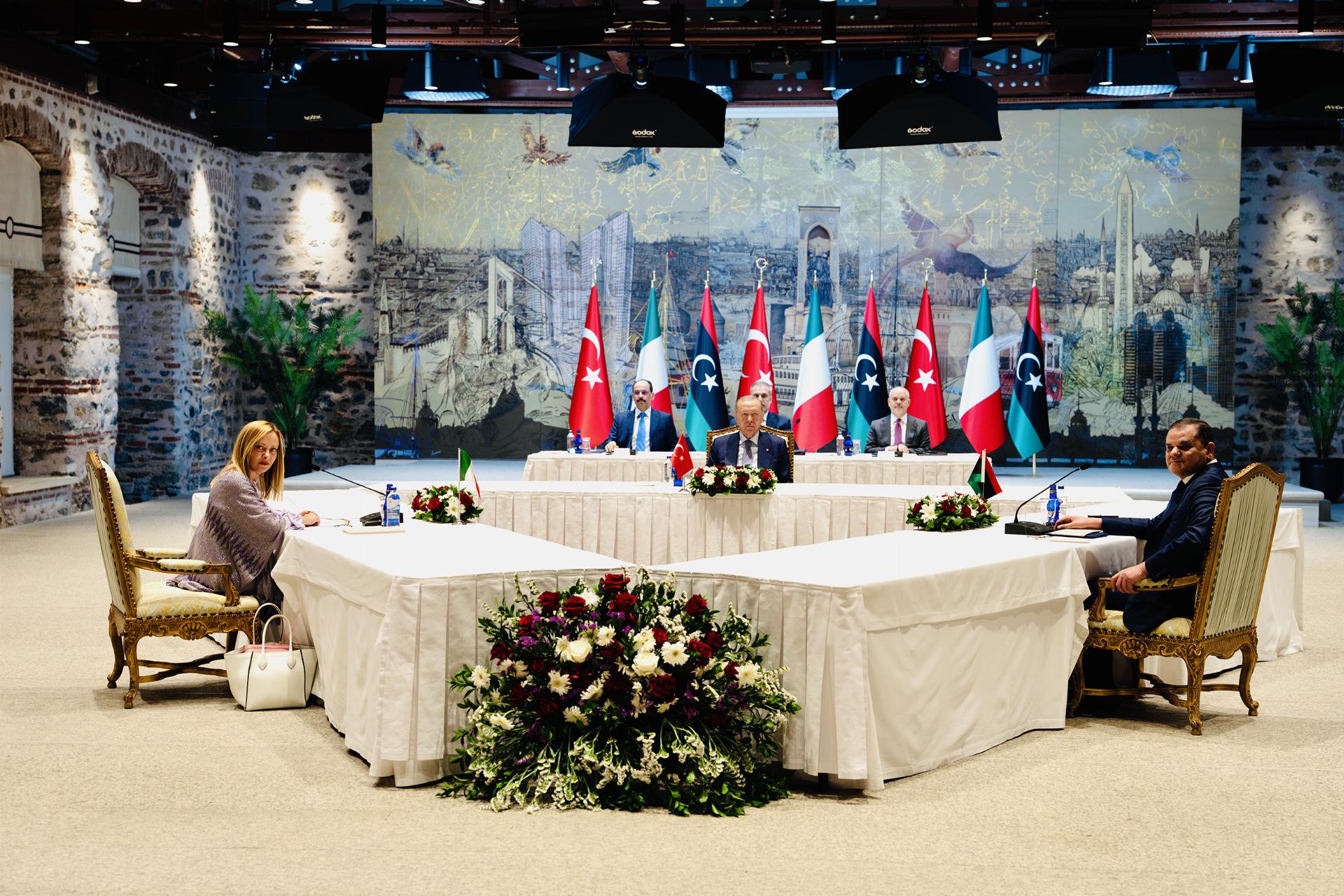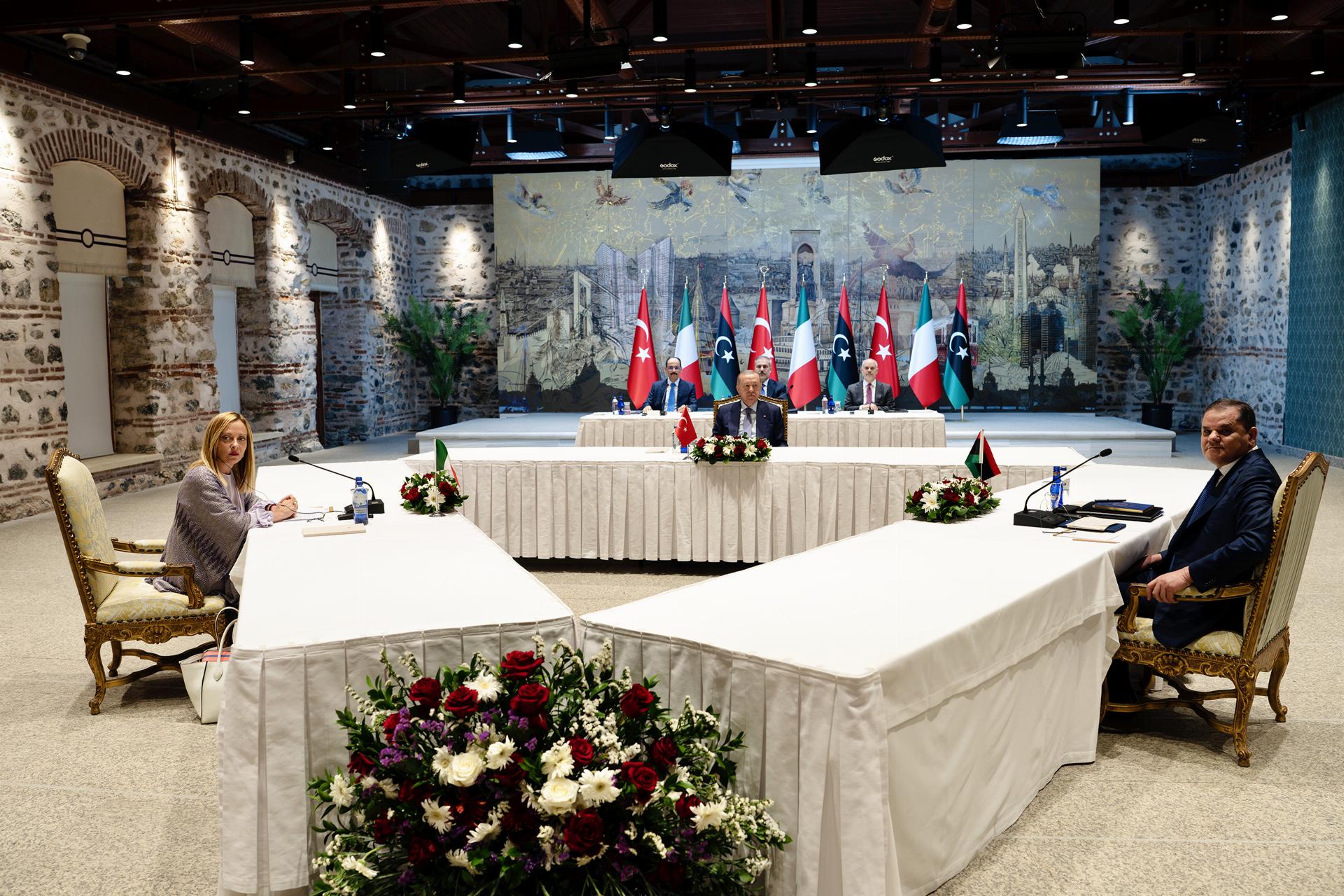 İSTANBUL – 1 Ağustos. Başbakan Giorgia Meloni, Türkiye Cumhuriyeti Cumhurbaşkanı Recep Tayyip Erdoğan ve Libya Ulusal Birlik Hükûmeti Başbakanı Abdulhamid